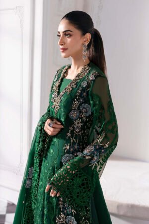 Embroidered Chiffon Front Kali Right With 3D Flowers & Luxury Hand Embellishment