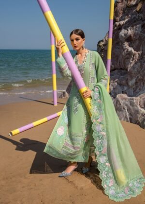 - 2 meters Embroidered Border on Aqua Organza for Sleeves and Daman