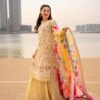 Infused with graceful allure and artistic finesse, Eldira reflects contemporary sophistication. Crafted in refreshing mint green with soft peach and lilac accents, the lawn shirt is delicately ornamented with fine embroidery. Teamed with a matching bottom and a diaphanous net dupatta, this ensemble ensures you turn heads wherever you go.