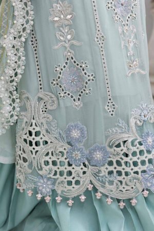 Embroidered Chiffon Center Panel With 3D Flowers Hand Embellishment