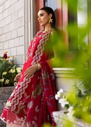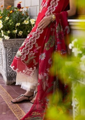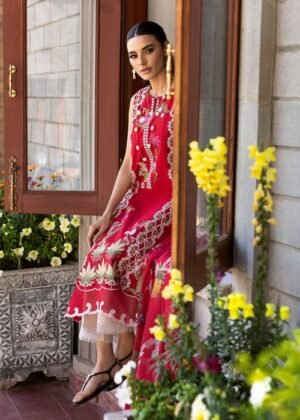 Additional Description: The first reveal is a bold, beautiful and unforgettable Ebony! The canvas is one of Pakistan’s finest lawns adorned with delicately rendered botanical motifs. The daman is finished perfectly with intertwining scallops and cutwork corners. A neckline kissed with floral vines and grape leaves meet in an asymmetrical composition. The panels are framed with delicate cutwork borders in ivory and baby pink. The silk duppatta is breezy and light! Printed with a modern composition of palm tree motifs, florals and vines. The look is iconic, statement and easy to wear.