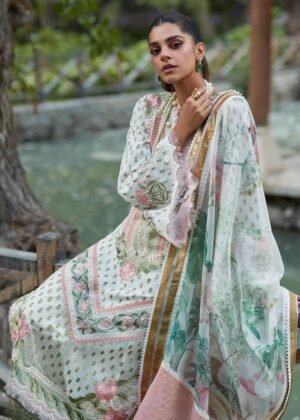 • One Hand Appliqued Gold Printed Front with Lace Shoulder and Neck Inserts and Marori Neckline